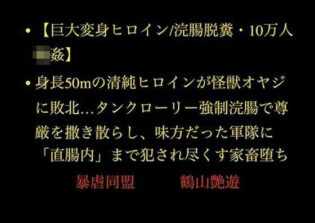 アナル d_708322【漫画フル】【巨大変身ヒロイン/浣腸脱糞/10万人輪●】身長50mの清純ヒロインが怪獣オヤジに敗北…タンクローリー強●浣腸で尊厳を撒き散らし、味方だった軍隊に「直腸内」まで犯●れ尽くす家畜堕ち
