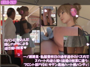 3DCG d_736879【漫画フル】一ノ瀬廻里・私服登校日の通学途中のバス内でスカート内逆さ撮り盗撮の被害に遭う:フロント版PV04(サテン黒地ハート柄パンティ)